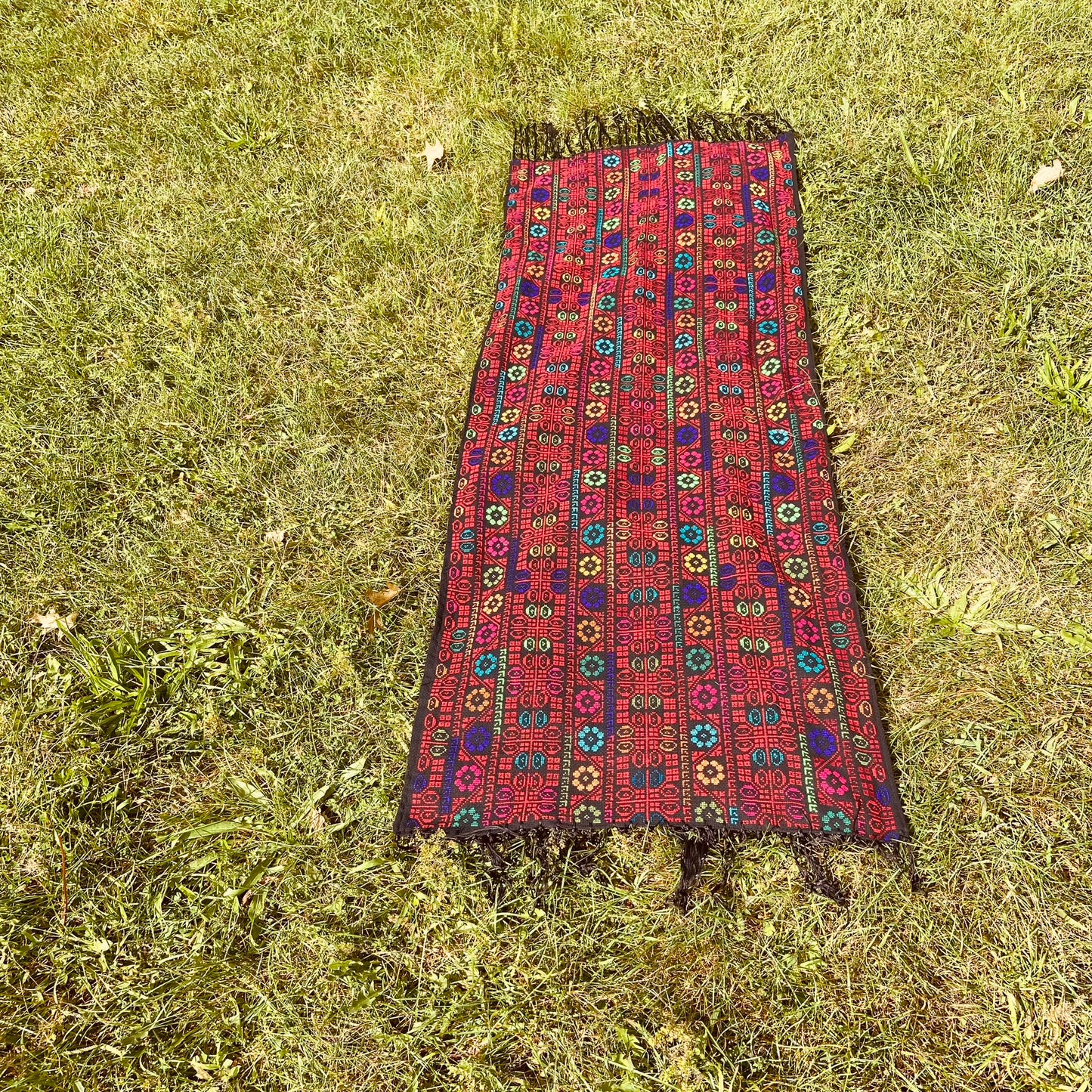 Hand stitching and embroidery are a long-standing tradition among Bedouin tribes in the Egyptian desert. In Northern Sinai, a Bedouin tribe handcrafts Sahara pieces, with an entire family earning their livelihood through traditional practices, women are responsible for handcrafting these unique pieces to support their families, while men manage the marketing and sales aspects of the business. This shawl is versatile, as it can be used as an accent to your dress or as a nice touch when draped over your armchair or sofa.